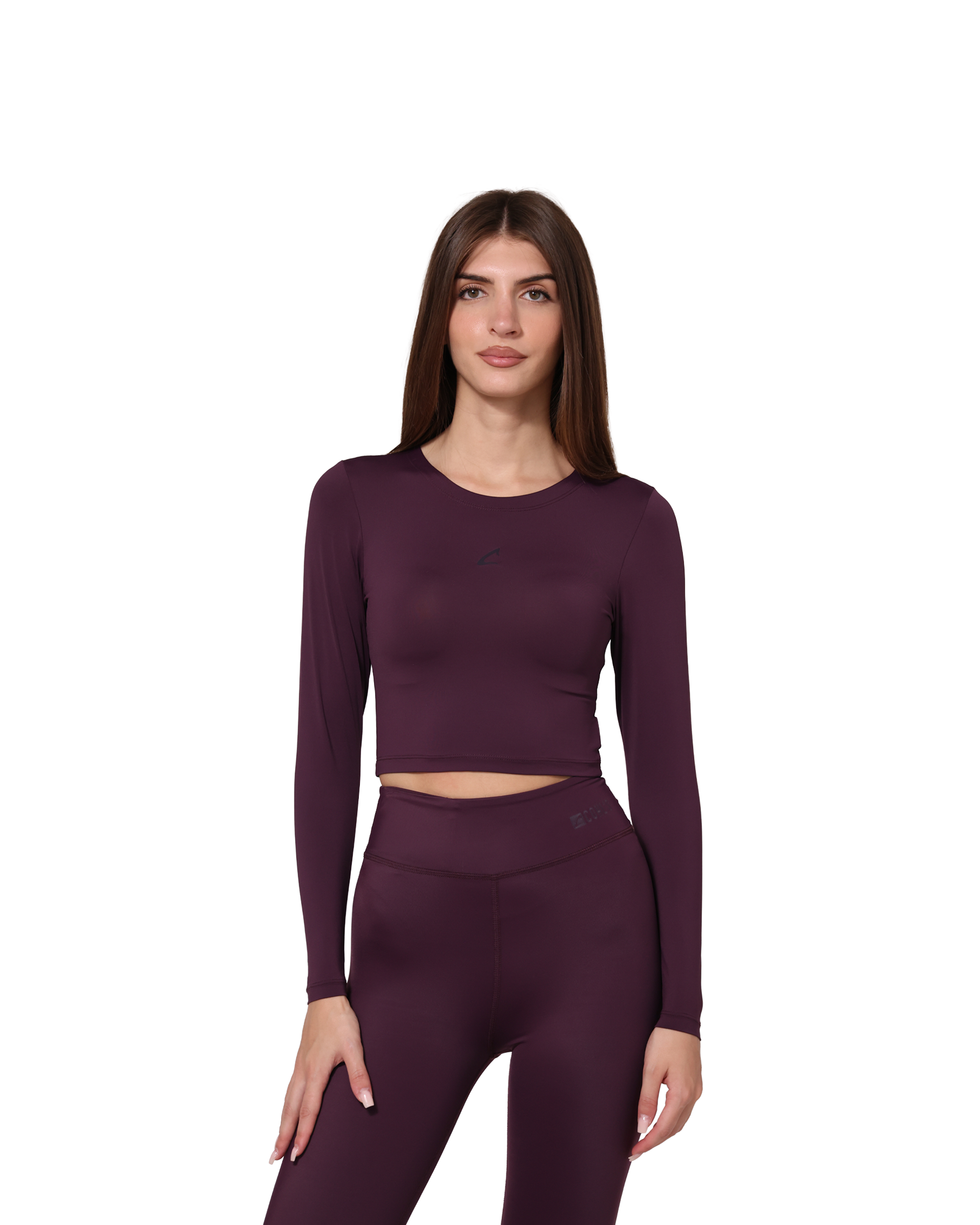 A long sleeve crop top with a round neck and waist-length cut, designed for a slim fit and made from breathable, pilling-resistant fabric for a second-skin feel and all-day comfort.