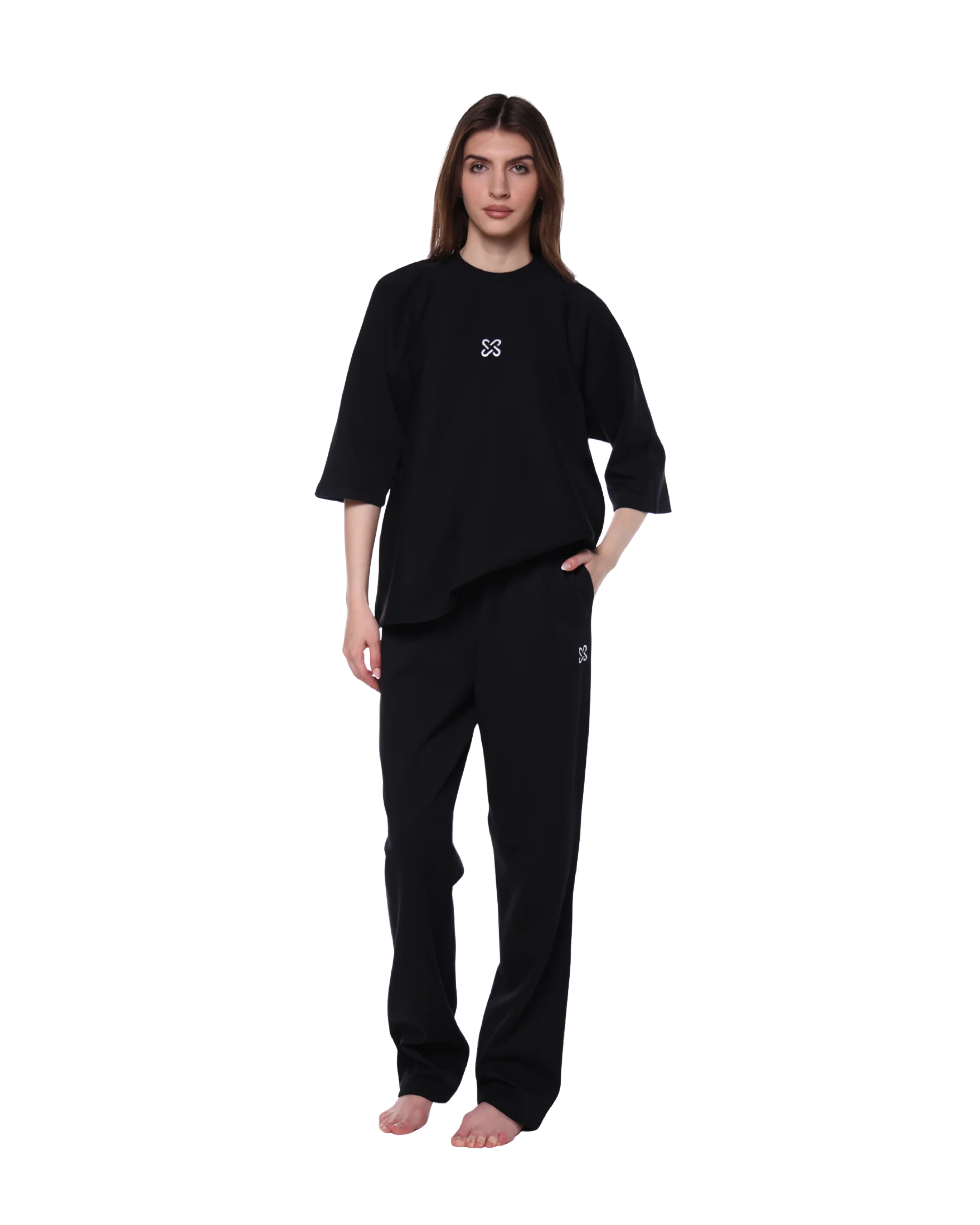 Oversized heavy cotton t-shirt with dropped shoulders, relaxed fit, and embroidered New Cross logo—where bold minimalism meets everyday comfort.