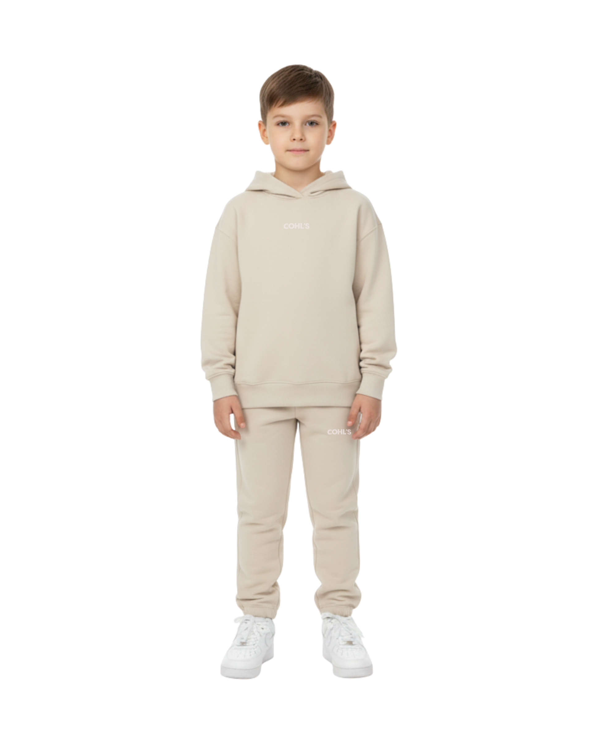 Soft brushed cotton hoodie set for kids with a relaxed fit. Cozy, breathable, and durable. Perfect for active days and everyday comfort.