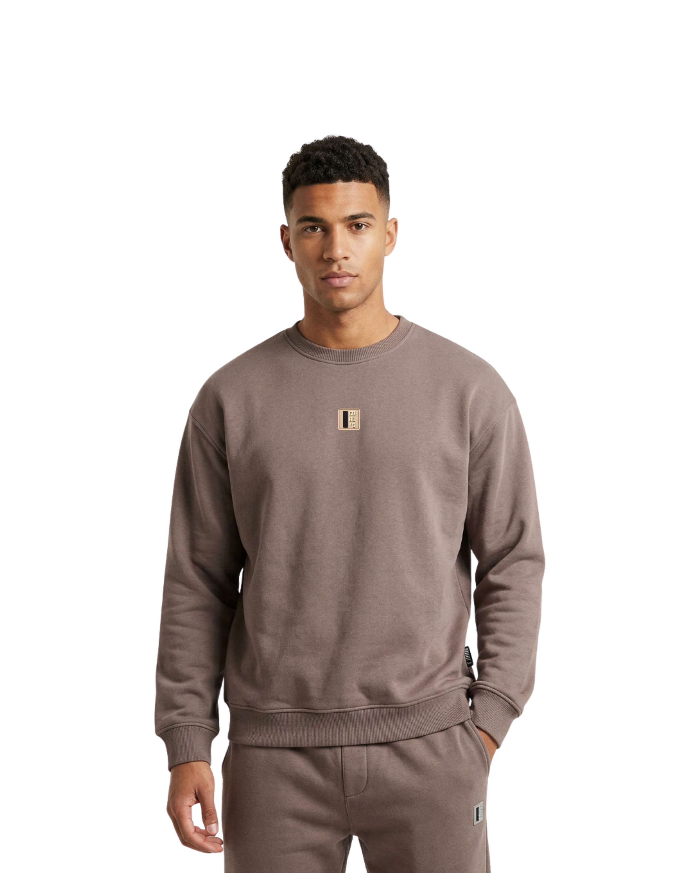 A modern boxy silhouette with a dropped-shoulder cut, this signature sweatshirt offers a structural, high-fashion feel. Crafted from a heavyweight cotton blend for breathable warmth, it features a minimalist rubberized chest patch for a clean, understated aesthetic.