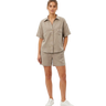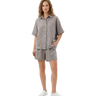The set includes relaxed shorts with an elastic waistband and practical side pockets, paired with a loose, breathable shirt for an easy, polished look.